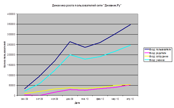 в) Изучить содержание и динамику развития образовательно-социальной сети Дневник.Ру; выявить эффекты и перспективы развития с точки зрения логики разворачивания бизнес-проекта.