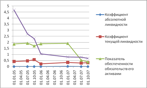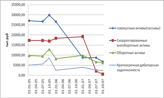 У должника за исследуемый период отсутствовали долгосрочные обязательства. Доля краткосрочных обязательств в совокупных пассивах на начало исследуемого периода составляла 44,3%, по состоянию на 1 июля 2007 года доля увеличилась до 100%, а на последнюю отчетную дату составляет 110% совокупных пассивов.