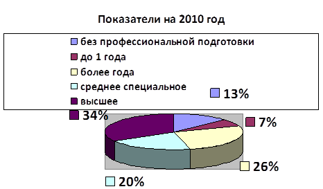 Уровень профессиональной подготовки по специальности, после проведенного анализа состава персонала, выглядит следующим образом: