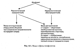 Современные отечественные психологи* представляют типологию видов и фаз конфликта следующим образом (рис. 1):
