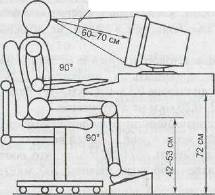 уровень глаз при вертикальном расположенном экране видеодисплея должен приходиться на центр или две третьи высоты экрана;