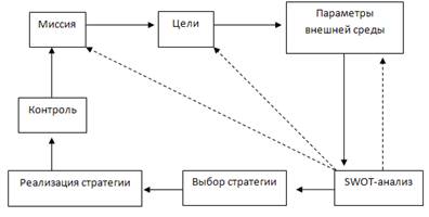 Однако в нестабильных, постоянно меняющихся условиях рыночной экономики организация должна быстро адаптироваться к изменчивой внешней среде. Именно стратегическое планирование позволяет гибко реагировать как на текущие, так и прогнозируемые изменения среды, чтобы исключить или снизить возникшие негативные факторы либо извлечь выгоду из сложившейся ситуации.