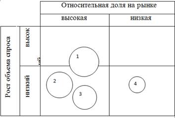 Одной из таких матриц является матрица Бостонской Консультативной Группы (БКГ). Матрица БКГ базируется на применении показателей: сравнительная доля рынка и темпы роста рынка. Основу матрицы представляют следующие гипотезы: