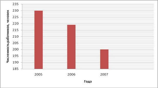 Из диаграммы видно, что потребность предприятия в трудовых ресурсах уменьшилась в сравнении с 2005 годом, это связано с автоматизацией оборудования и введение новой техники, которая позволила сократить численность работников.