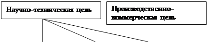 Экономическая цель – получение расчетной величины прибыли от реализации продукции или услуг; научно-техническая цель – обеспечение заданного научно-технического уровня продукции и разработок, а также повышение производительности труда за счет совершенствования технологии; производственно-коммерческая цель – производство и реализация продукции или услуг в заданном объеме и с заданной ритмичностью (обеспечивающие экономическую цель договорные обязательства, госзаказы и т.п.); социальная цель – достижение заданной степени удовлетворения социальных потребностей работников.