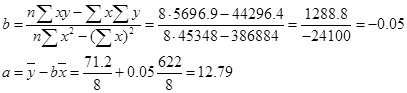 - уравнение парной регрессии. Коэффициенты найдем из системы нормальных уравнений: