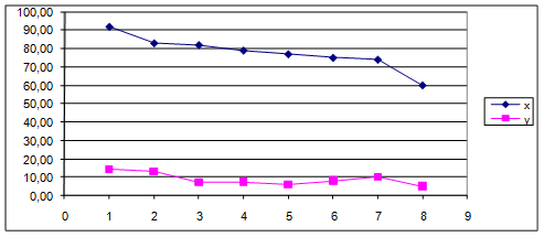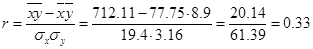 Судя по значению полученного коэффициента, связь между x и y довольно большая.