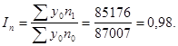 На основании данных, приведенных в таблице, можно сделать вывод, что значение абсолютного прироста за исключением 2005 года, в каждом году положительно. Наиболее высокий прирост наблюдается в 2008 году, это связано с высокой ценой на зерновые в этом году.