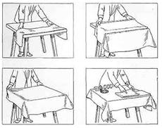 Четко заглаженная середина скатерти обычно проходит по оси столешницы. Углы скатерти свисают против ножек стола, прикрывая их. Нельзя захватывать