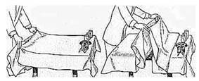 скатерть пальцами, так как после этого остаются заломы, а также обильно смачивать и растягивать на столе недостаточно проглаженные скатерти. Это приводит к тому, что они теряют жесткость, белизну и блеск, пропадает четкость рисунка и создается впечатление, что скатерти уже использовали. Мятые скатерти следует возвращать в сервизную. В случае, когда скатерть помята незначительно, ее подглаживают. В ресторанах для этой цели должны быть электроутюги. Перед проглаживанием рекомендуется слегка смочить помятость из пульверизатора.