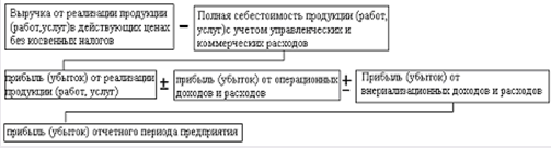 Прибыль (убыток) от реализации продукции (работ, услуг) - это финансовый результат, полученный от основной деятельности предприятия, которая может осуществляться в любых видах, зафиксированных в его уставе и не запрещенных законом. При этом финансовый результат определяется раздельно по каждому виду деятельности предприятия, относящемуся к реализации продукции, выполнению работ, оказанию услуг. Он равен разнице между выручкой от реализации продукции (работ, услуг) и затратами на ее производство и реализацию.