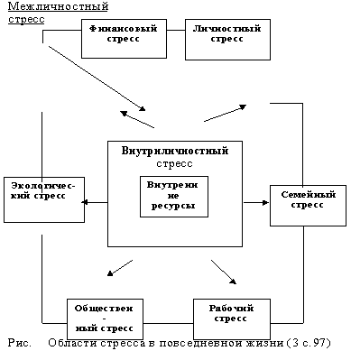 Область межличностного стресса взаимодействует с определенными областями жизни. Поскольку каждому человеку приходится постоянно решать разнообразные социальные вопросы в своей деятельности, то взаимодействие с другими лицами и его оценка оказывают существенное влияние на наше восприятие, переживание, отношение к событиям и являются проблемами отношений между людьми.