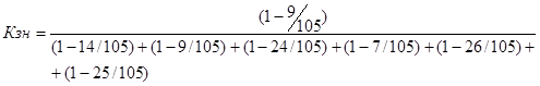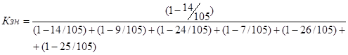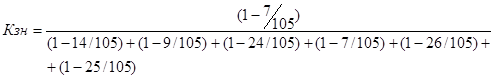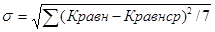 Расчетные значения коэффициента равномерности (Кравн), абсолютное отклонение от средней величины (1 – Кравн) и квадрат абсолютного отклонения систематизированы в таблице 1.