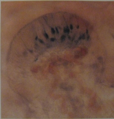 Прижизненное окрашивание проводилось метиленовым синим 5*10-3 моль, установкой для ионофореза. Фотография записывалась с фотомикроскопа Об.40, ок. 3, нас.