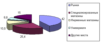 Крупные обувные центры, ориентированных на потребителя с невысоким и средним достатком, а также развитие сетевых структур, ориентированных на представителей среднего класса, с каждым годом уменьшают долю рынков, особенно в крупных городах.