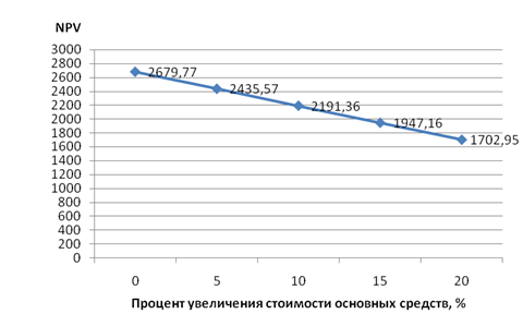 Рис. 18.1 – Зависимость NPV от изменения стоимости капитальных ресурсов (инвестиций)