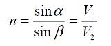 При этом отношение синуса угла падения луча (α) к синусу угла преломления (β) для двух соприкасающихся сред есть величина постоянная, называемая показателем преломления (n).