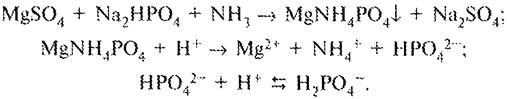К 2-3 каплям раствора прибавляют 1 мл воды, по 0,5 мл раствора аммония хлорида, натрия фосфата и аммиака; образуется белый кристаллический осадок, растворимый в разведенной уксусной кислоте и нерастворимый в избытке раствора аммиака.