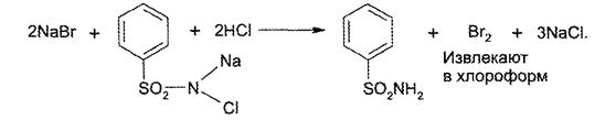 0,5 мл ЛФ помещают в пробирку, добавляют 2-3 капли разведенной хлороводородной кислоты, 3-5 капель раствора хлорамина, 1 мл хлороформа и взбалтывают.