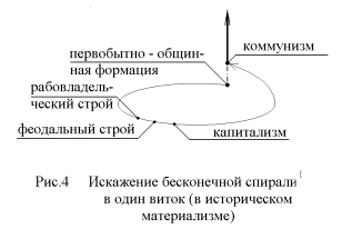 Марксистская теория развития рождалась в споре с другими точками зрения, одна из которых утверждала, что в Мире есть только то, что есть и ничего нового возникнуть не может, поэтому все изменения происходят циклически и, рано или поздно, возвращаются к исходному пункту. Абстрактной моделью такого представления о процессе развития является движение по замкнутому кольцу (рис.1).