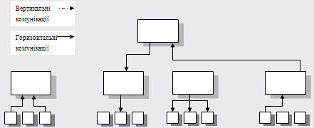 · Комунікації між рівнями і підрозділами організації, до них відносяться комунікації по висхідній, комунікації між різними відділами, комунікації керівник-підлеглий, комунікації між керівником і працюючою групою, неформальні комунікації [12,с.166-167]