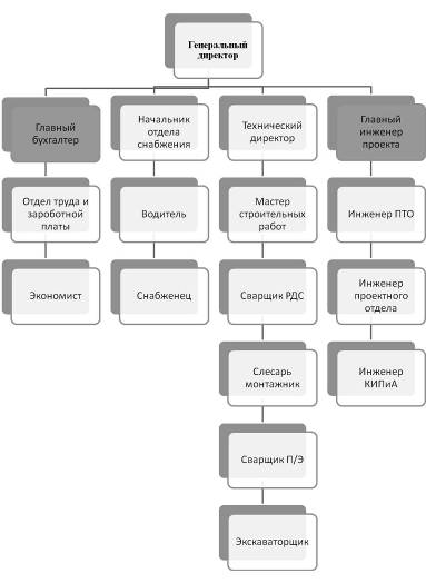 Привести состав в виде схемы подразделении отделов и служб входящих в подчинение главного бухгалтера, главного инженера.