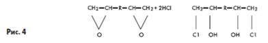 Метод определения эпоксидных групп основан на взаимодействии эпоксигрупп с соляной кислотой и образованием хлоргидрина по схеме (рис.4)