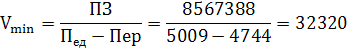 Минимальный объем выпуска продукции (в натуральном выражении), ниже которого производство продукции становится нерентабельным, рассчитывается следующим образом: