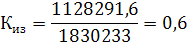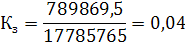 Коэффициент закрепления (загрузки) оборотных средств. Показатель обратный коэффициенту оборачиваемости оборотных средств. Характеризует сумму оборотных средств, приходящихся на 1 руб. выручки от реализации. Рассчитывается путем определения соотношения среднего остатка оборотных средств за отчетный период к объему реализации за этот же период. Для ОАО «Краснодаргазстрой» коэффициент равен: