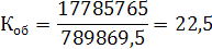 Коэффициент оборачиваемости оборотных средств показывает, сколько оборотов совершили оборотные средства за анализируемый период (квартал, полугодие, год). Рассчитывается как отношение объема реализованной продукции за отчетный период к среднему остатку оборотных средств за этот же период. Для ОАО «Краснодаргазстрой» коэффициент равен: