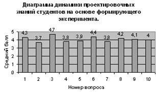 Рисунок 2. Диаграмма динамики проектировочных знаний, выявленных в процессе формирующего эксперимента