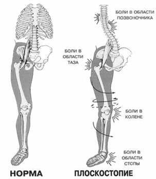 При нормальной форме стопы нога опирается на наружный продольный свод, а внутренний свод служит рессорой, обеспечивающей эластичность походки. Если мышцы, поддерживающие свод стопы, ослабевают, вся нагрузка ложится на связки, которые, растягиваясь, уплощают стопу (рис. 4).