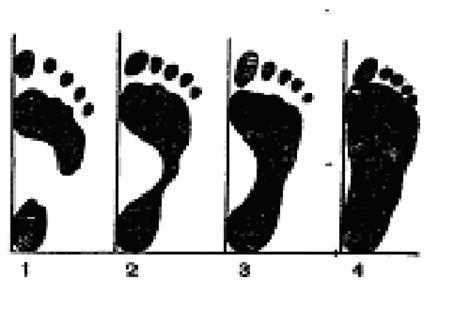 Рис.4 Отпечатки нормальной (1, 2, 3) и плоской (4) стопы
