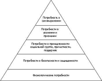 Наибольшей популярностью как в России, так и на западе пользует пирамида потребностей, построенная американским психологом Абрахамом Маслоу. Согласно ей, все потребности располагаются в восходящем порядке от "низших" материальных до "высших" духовных [3; 79-80] (см. рис. 2):