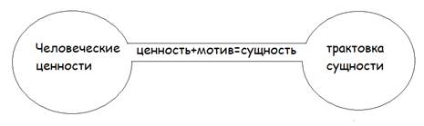 Размышляя над ценностями и мотивами, мы пришли к следующему наблюдению. Чтобы было понятнее, попробуем отразить это на схеме (рис. 3). С одной стороны, у нас есть огромное количество ценностей, в большей или меньшей степени важных для человека. С другой – брэнд, в основе которого лежит сущность, которая состоит из нескольких ценностей, объединенных в одну, более абстрактную (например, не стабильность, не гармония общества, семьи, не общественный порядок, а более общее понятие - безопасность), которая одновременно является мотивационным типом и побуждает к покупке. Нужно также отметить, что реализация ценности должна соответствовать представлениям целевой аудитории о ней (то, что престижно для деревенской девочки, не является таковым для столичной светской львицы). Когда потребитель сталкивается с грамотно построенным брэндом, он видит вложенную в него ценность и трактует ее уже по-своему, в соответствии с общечеловеческими ценностями (не просто доминирование, а престиж, власть, карьерный успех, отличие от серой массы, богатство, социальный статус и т.д.).
