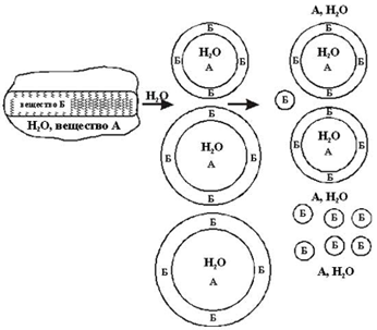 меняя свой объем в ответ на изменение концентрации веществ в окружающей водной среде. Малые моноламеллярные липосомы получают из многослойных при обработке их ультразвуком при впрыскивании спиртового раствора липидов в водную среду, продавливанием под большим давлением воднолипидных дисперсий через небольшое отверстие, а также удалением детергента, солюбилизирующего липид, диализом или гель-фильтрацией. Такие липосомы содержат 0,2-1,5 л воды на 1 моль липида. Малые моноламеллярные липосомы не обладают осмотической активностью и не коагулируют в течение длит. времени. Большие моноламеллярные липосомы имеют значит. внутренний объем воды (8-14 л на 1 моль липида) и обладают осмотической активностью. Обычно их получают удалением солюбилизирующего детергента в условиях контролируемого диализа или впрыскиванием раствора липида в легколетучем растворителе (диэтиловый эфир, петролейный эфир, пентан) в подогретую до 60 °С воду. Крупные однослойные липосомы могут быть также получены из малых липосом путем их слияния под действием Са2+ или в условиях термотропного фазового перехода. Получены также липосомы, образованные липидами (или подобными молекулами), которые способны полимеризоваться (содержат обычно связи С—С или ). Полимеризация может осуществляться как в гидрофобной, так и в гидрофильной области бислоя и приводить к, так называемым, полимерным липосомам. Последние отличаются от обычных липосом большей стабильностью. Липосомы широко используют в качестве модельных систем при изучении принципов молипосомы