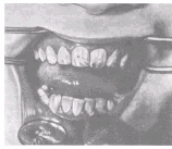 Кроме перечисленных выше видов патологического П. выделяют так называемый снижающийся прикус, который формируется вследствие стирания зубов или их утраты. При этом нижняя треть лица укорочена, расстояние между зубами увеличено (до 8—10 мм при норме 2—3 мм), углы рта опущены, носогубные складки резко выражены. При потере боковых зубов в детском или юношеском возрасте возможно дистальное смещение нижней челюсти. Снижающийся П., как правило, приводит к изменению соотношения элементов височно-нижнечелюстного сустава, в результате чего могут возникать боли в области сустава, затруднения и асимметрия движений нижней челюсти, щелканье или треск в суставе при его движениях, головные боли, шум в ушах.