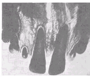 ). Развитие корня - важнейший фактор прорезывания ЗБ. Вторым фактором является рост пульпы, приводящий к повышению давления внутри зубного зачатка и выталкиванию последнего за счет "реактивной" силы через каналы ЗБ. Кроме того, на дне зубной альвеолы происходит дополнительное отложение костной ткани слоями. Сочетание этих механизмов приводит к прорезыванию зубов.