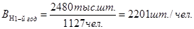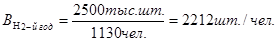 1. Выработка одного работника, рассчитанная натуральным методом, шт./чел.