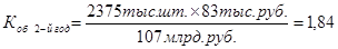 2. Выработка одного работника, рассчитанная стоимостным методом, тыс. руб./чел.