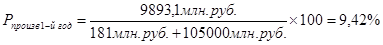 = 30642,07 млн. руб. – 1726,6 млн. руб. = 28915,47 млн. руб.