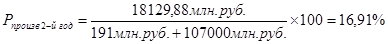 = (191 000 млн. руб. – 21010 млн. руб.) × 1 % / 100 % = 1699,9 млн. руб.