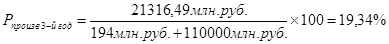 = (194 000 млн. руб. – 21340 млн. руб.) × 1 % / 100 % = 1726,6 млн. руб.