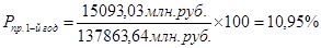 = 15093,03 млн. руб. – 1673,2 млн. руб. = 13419,83 млн. руб.