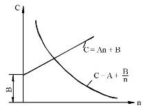За формулою (2) і згідно з кривими, зі збільшенням кількості заготовок собівартість їх обробки знижується за гіперболічною залежністю (навіть при збереженні незмінним технологічного процесу і пов’язаним з ним одноразових і поточних затрат). Проте, це зниження собівартості відбувається тільки у певних межах збільшення кількості оброблюваних заготовок. В міру збільшення партії заготовок до деякого значення n1