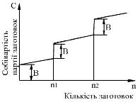 Рис. 1. Зміна собівартості С зі збільшенням кількості оброблюваних заготовок