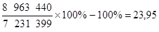 Разница в % = 115, 02 % - 100% = 15,02 %