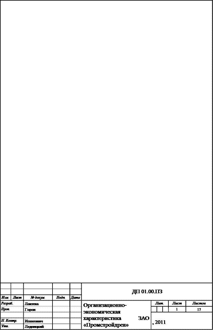 Организационно-экономическая характеристика ЗАО «Промстройдрев»