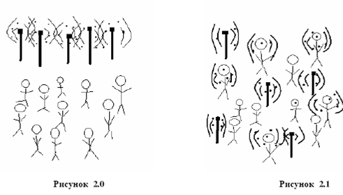 Рисунки показывают нам, как взаимодействовали СМИ и отдельный человек в обществе модерна и постмодерна. В первом случае (рисунок 2.0) существовали четко определенные субъекты информации, также называемые традиционными СМИ: газеты,