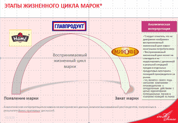 2 Следует отметить, что на диаграмме изображен воспринимаемый жизненный цикл марок конечными потребителями. Воспринимаемый жизненный цикл может не совпадать и не коррелировать с динамикой и реальной ситуацией продаж в отдельных продуктовых категориях, позицией производителя на рынке, но является своего рода сигналом для компаний-производителей к инициированию определенных действий с целью хеджирования потенциальных рисков и усилению позиций на рынке.